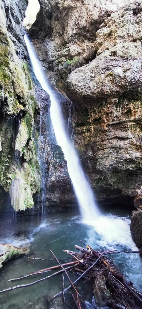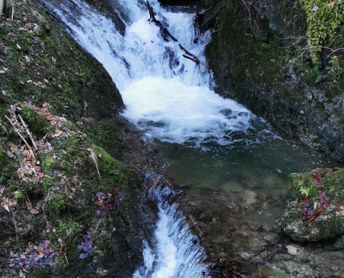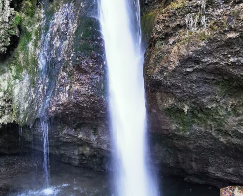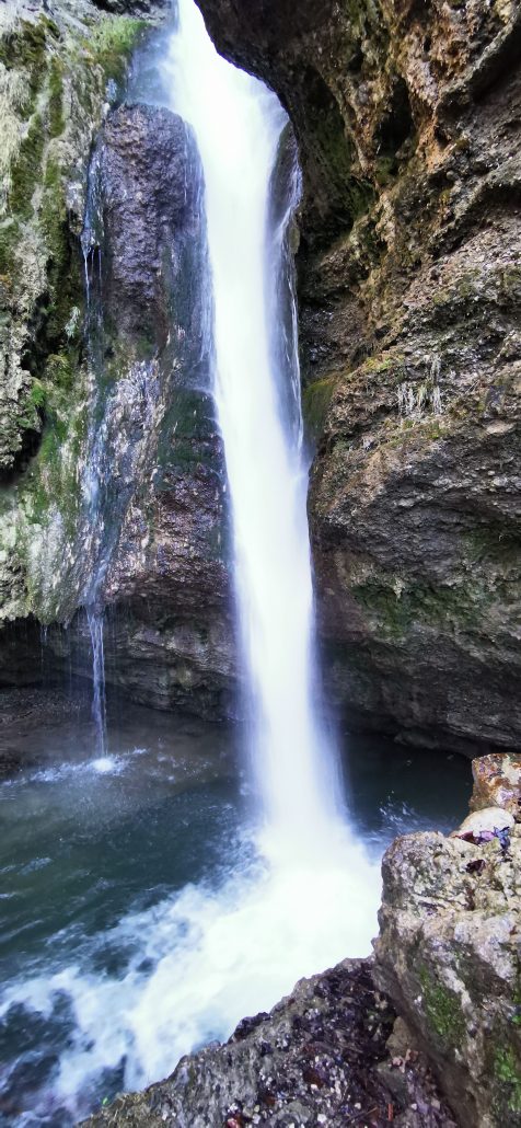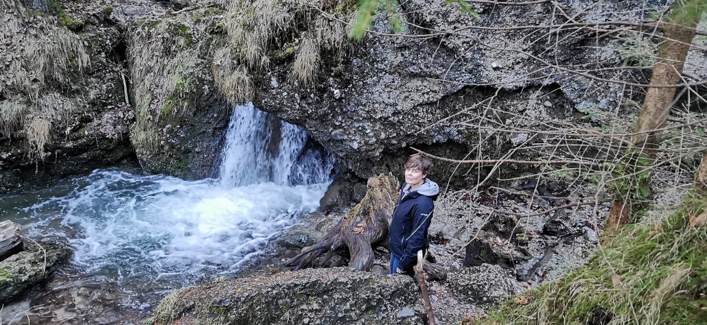 Wir haben Sylvester in Hindelang verbracht. Am Neujahrstag haben wir uns die Wasserfälle angeschaut. Wir sind von oben gekommen und zuerst durch eine kleine aber enge Klamm dem Bach nach unten gefolgt. Plötzlich war die Klamm zu Ende und der Berg auch. Wir mußten erst um den Felssturz herum laufen und von unten kommen, um den Wasserfall zu sehen.