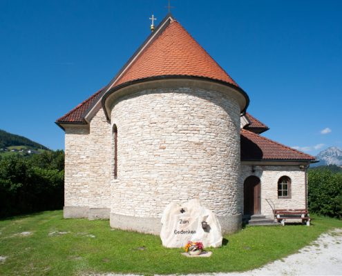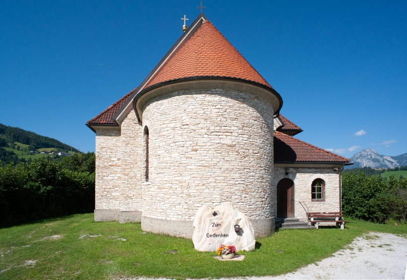 Zur Geschichte der Kirche: Sie wurde hauptsächlich von zwei Männern aus Stein an der Enns erbaut. Sie hatten sich geschworen, dass sie eine Kirche bauen wollen, wenn sie heil aus dem Krieg zurück kommen. Die Mauern der Kirche bestehen aus Marmor vom gemeindeeigenen Marmor-Steinbruch.